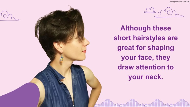 Although these short hairstyles are great for shaping your face, they draw attention to your neck.