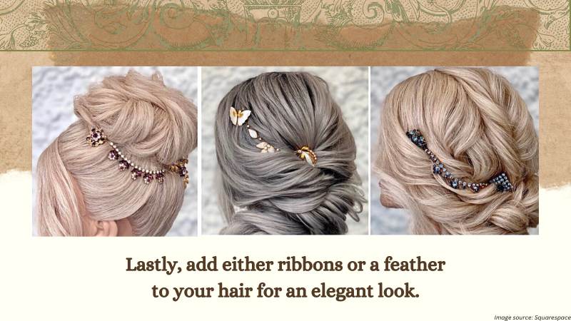 Lastly, add either ribbons or a feather to your hair for an elegant look.