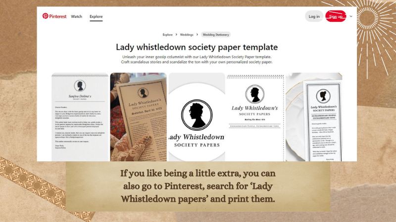 If you like being a little extra, you can also go to Pinterest, search for ‘Lady Whistledown papers’ and print them.