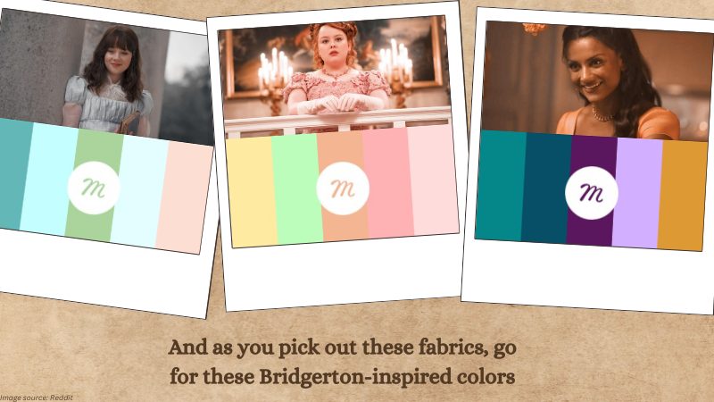 And as you pick out these fabrics, go for these Bridgerton-inspired colors: