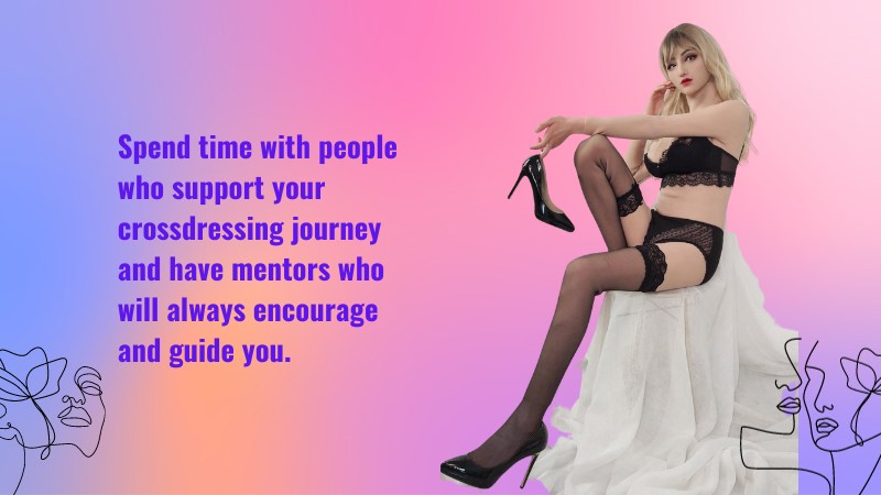 Moreover, spend time with people who support your crossdressing journey and have mentors who will always encourage and guide you.
