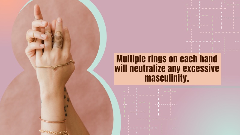 Multiple rings on each hand will neutralize any excessive masculinity.