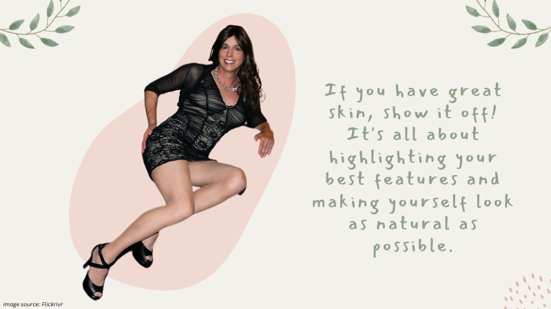 I ensure to wear clothes that accentuate my favorite features and hide my least favorite. For example, look for dresses that fit your chest and hips without being too tight. Pick colors and fabrics that make you feel confident and comfortable.