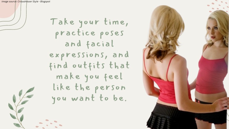 It can be intimidating to take pictures as an MTF crossdresser, so I recommend practicing in the mirror before you start taking photos. Notice what poses, and facial expressions look best on you and make sure that they are natural.