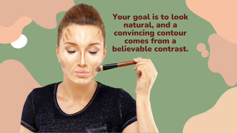 It would help if you kept it similar to your natural skin color. Your goal is to look natural, and a convincing contour comes from a believable contrast. A good rule of thumb to keep this balance is to avoid makeup that is more than two shades darker or lighter than your skin.