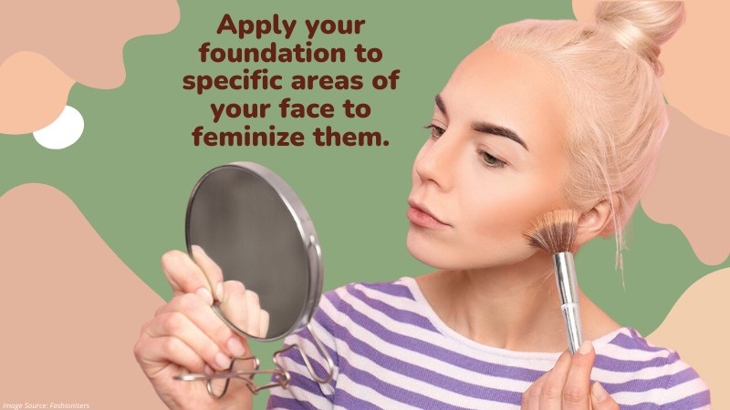 Real women have flaws in their skin and multiple tones. With that in mind, you should apply your foundation to specific areas of your face to feminize them. If you would still prefer a bit more coverage, avoid making it too opaque. Please make sure the layer is sheer enough to show your many different skin tones through it.