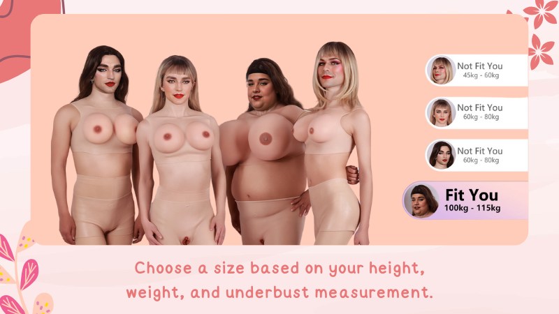 Choose a size based on your height, weight, and underbust measurement. If you’re unsure of this, you can begin the breast form journey with a small size. Different cup sizes have varying weights, with larger cups generally being heavier.