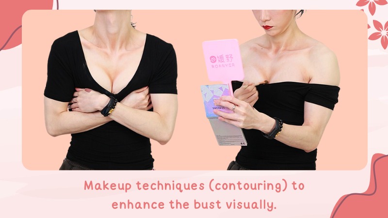 Makeup techniques (contouring) to enhance the bust visually. Contouring is another way to make the boobs look bigger naturally. All you need is to know where to highlight and how to blend creams and powders.