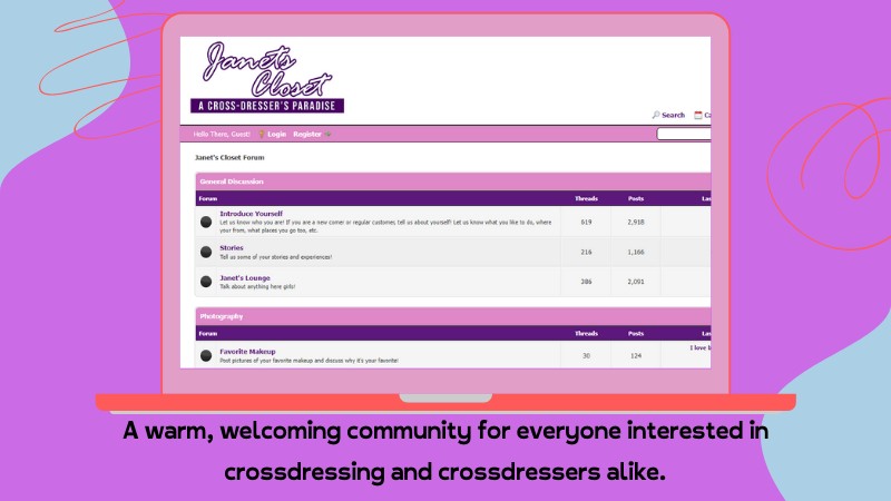 The last of my favorite forums to visit is of course Janet’s Closets’. With many daily users, you can rest assured that you will find new community content and interaction every day! A warm, welcoming community for everyone interested in crossdressing and crossdressers alike. Here you will be guided by many like-minded sisters and lose a bit of that social anxiety. Don’t forget to visit it!