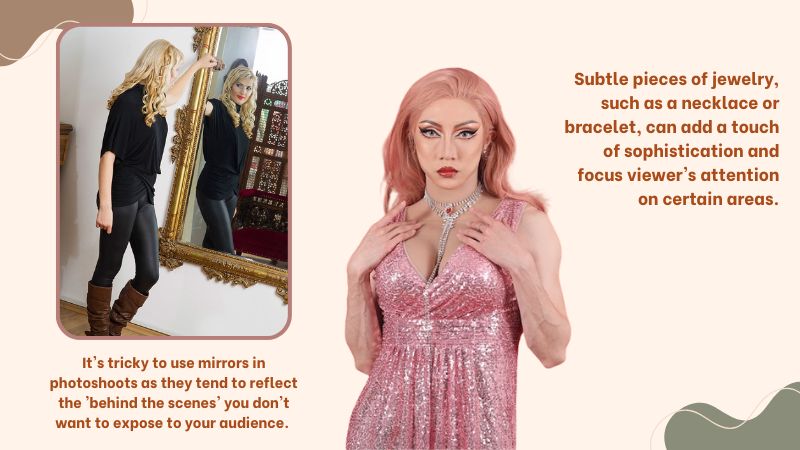 - Mirrors: It’s tricky to use mirrors in photoshoots as they tend to reflect the ‘behind the scenes’ you don’t want to expose to your audience. But when you perfect how to creatively use them, you’ll create fascinating reflections and perspectives. These elevate your photos to not mere lewd ones, but ones museums deserve!