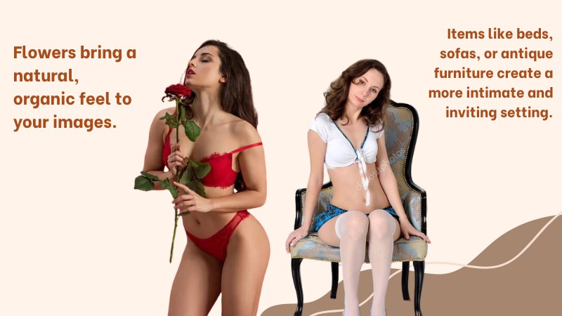 - Furniture: Items like beds, sofas, or antique furniture create a more intimate and inviting setting. These can make you appear more relaxed and natural.