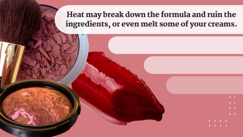 Heat itself may break down the formula and ruin the ingredients or even melt some of your creams.