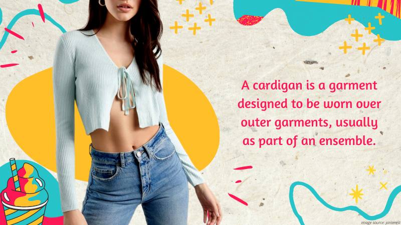 A cardigan is a garment designed to be worn over outer garments, usually as part of an ensemble. Cardigans are often knitted from cashmere, wool, or cotton yarns. They are normally fitted to the body, and the sleeves may be full-length or three-quarter length. It gained popularity during the late 19th century. These garments are perfect to layer up when wearing bulky outfits that make movement difficult.