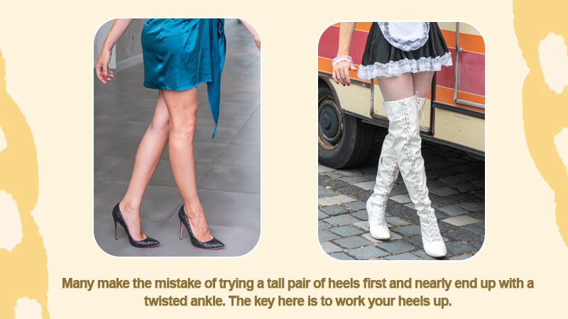Many make the mistake of trying a tall pair of heels first and nearly end up with a twisted ankle. The key here is to work your heels up. At first, it may feel like walking on stilts. But with time and practice, you’ll find your balance. Soon, you’ll strut confidently in higher heels without feeling like toppling over.