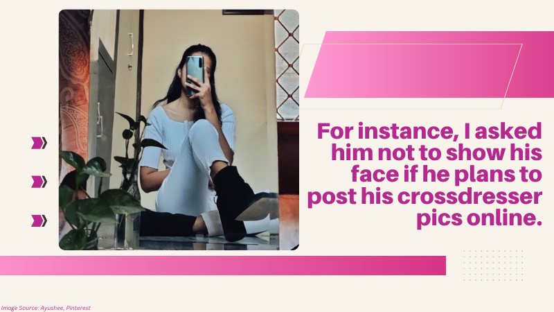 Only after some time did I realize that I was forcing myself to agree with everything right away. I thought that if I’m not okay with everything crossdressing-related, he may think I don’t love him, or he may feel compelled to lie to himself. Thankfully, we talked about it and agreed to take it slowly.