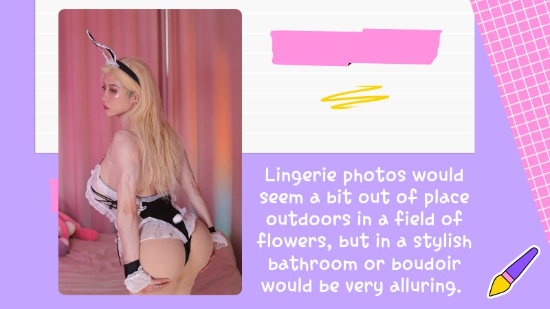 Lingerie photos would seem a bit out of place outdoors in a field of flowers, but in a stylish bathroom or boudoir would be very alluring.