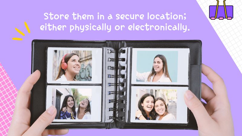 Keeping your photos safe is the most important thing. Store them in a secure location, either physically or electronically.