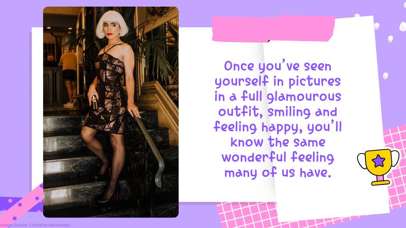 Once you’ve seen yourself in pictures in a full glamourous outfit, smiling and feeling happy, you’ll know the same wonderful feeling many of us have. It can capture us at our most vulnerable and happy all at once.