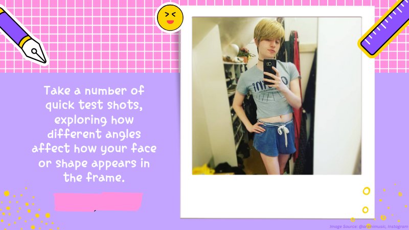 Take a number of quick test shots, exploring how different angles affect how your face or shape appears in the frame. You should remember to make tiny changes to the lighting from time to time. Sometimes, even small adjustments to the position of the camera or the angle of the light can have an impact on the photos.