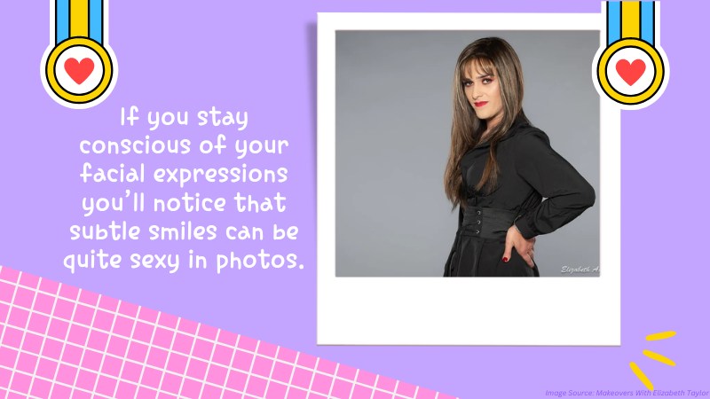 If you stay conscious of your facial expressions, you’ll notice that subtle smiles can be quite sexy in photos.