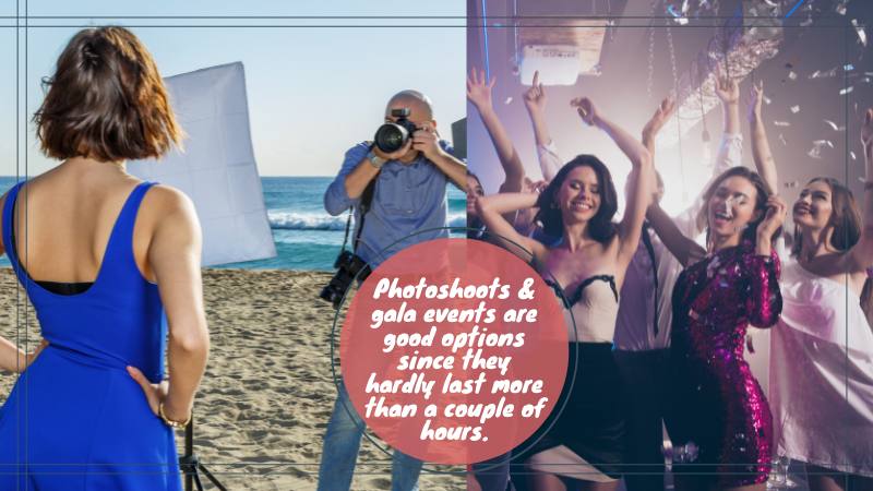 Crossdressing sessions and photoshoots, in general, are also an option since they hardly last more than a couple of hours.
