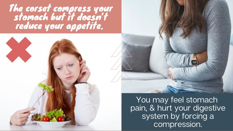 The corset does compress your stomach while you wear it, but it doesn’t reduce your appetite.