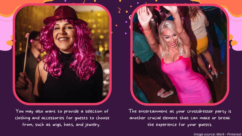 It’s important to remember that not all crossdressers are comfortable wearing revealing or provocative clothing, so make sure to emphasize that all guests should wear outfits that they feel comfortable and confident in. You may also want to provide a selection of clothing and accessories for guests to choose from, such as wigs, hats, and jewelry.