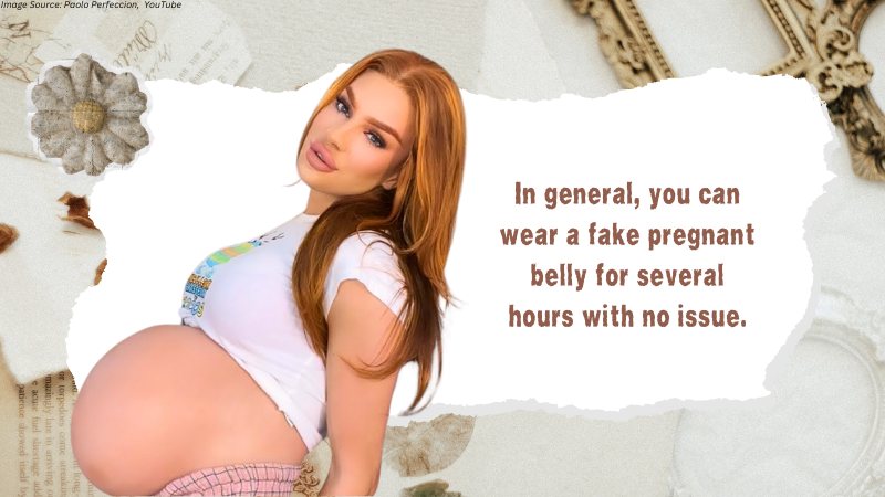 In general, you can wear a fake pregnant belly for several hours with no issue. But this will depend on the fake belly type and how your body reacts. For example, silicone fake bellies might feel heavier and require more breaks.