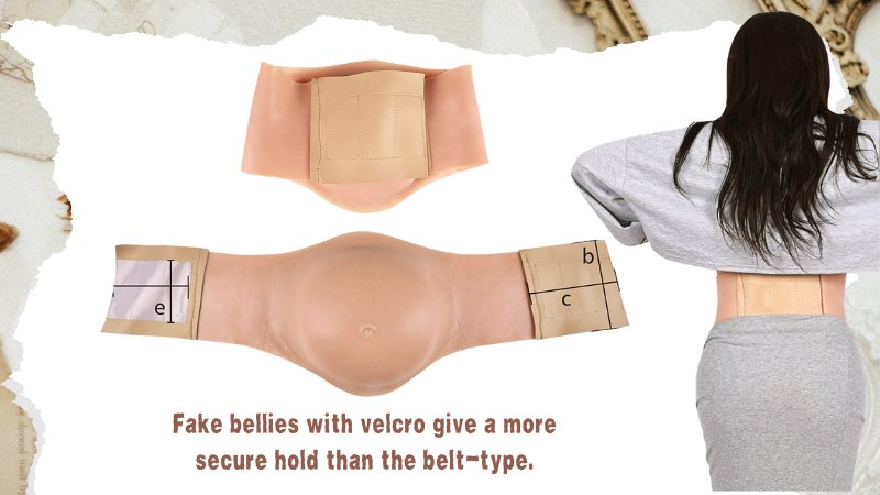 Fake bellies with velcro give a more secure hold than the belt-type. I find it to be just the right balance for my crossdressing. In fact, my fave is the Silicone Pregnant Belly with Velcro for its just right natural aesthetic.