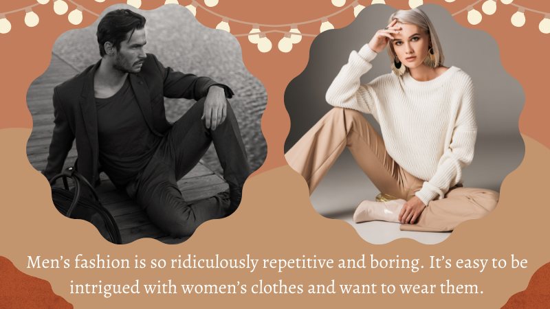 Men’s fashion is so ridiculously repetitive and boring. It’s easy to be intrigued with women’s clothes and want to wear them. Society should eradicate this obsolete taboo from its mindset to grow once and for all.