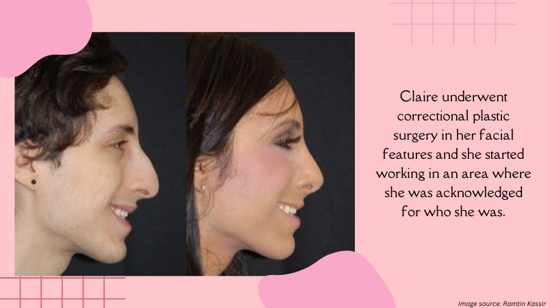 Claire underwent correctional plastic surgery in her facial features and she started working in an area where she was acknowledged for who she was.