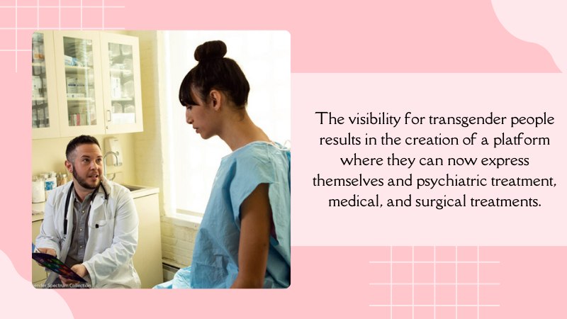 The visibility for transgender people results in the creation of a platform where they can now express themselves and psychiatric treatment, medical, and surgical treatments.