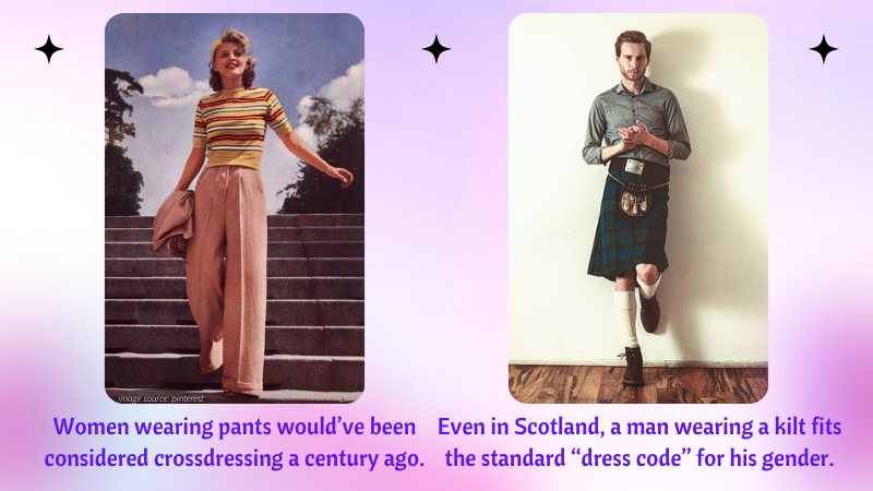 Women wearing pants would’ve been considered cross-dressing a century ago.