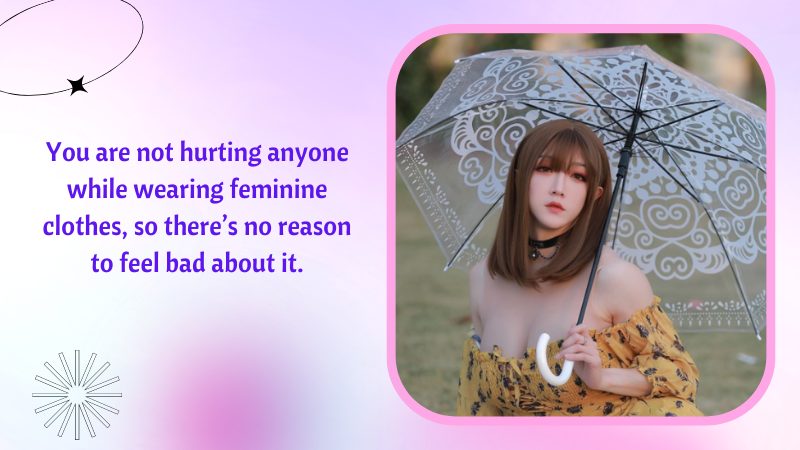 You are not hurting anyone while wearing feminine clothes, so there’s no reason to feel bad about it.