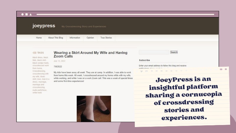 JoeyPress is an insightful platform sharing a cornucopia of crossdressing stories and experiences.