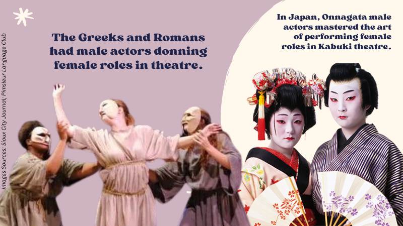 In Japan, Onnagata male actors mastered the art of performing female roles in Kabuki theatre.
