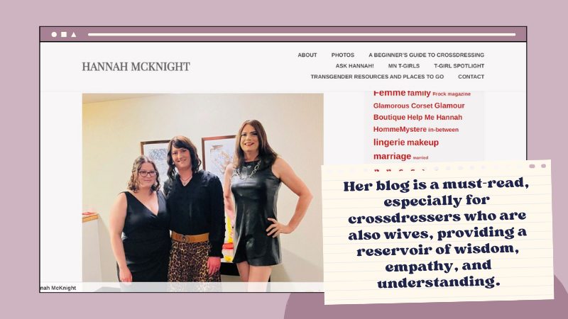 Her blog is a must-read, especially for crossdressers who are also wives, providing a reservoir of wisdom, empathy, and understanding.