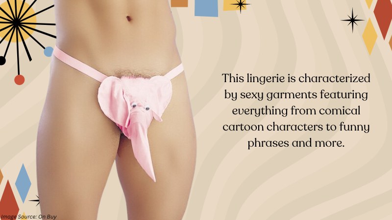 This lingerie is characterized by sexy garments featuring everything from comical cartoon characters to funny phrases and more.