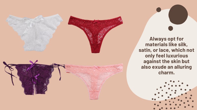 Always opt for materials like silk, satin, or lace, which not only feel luxurious against the skin but also exude an alluring charm.