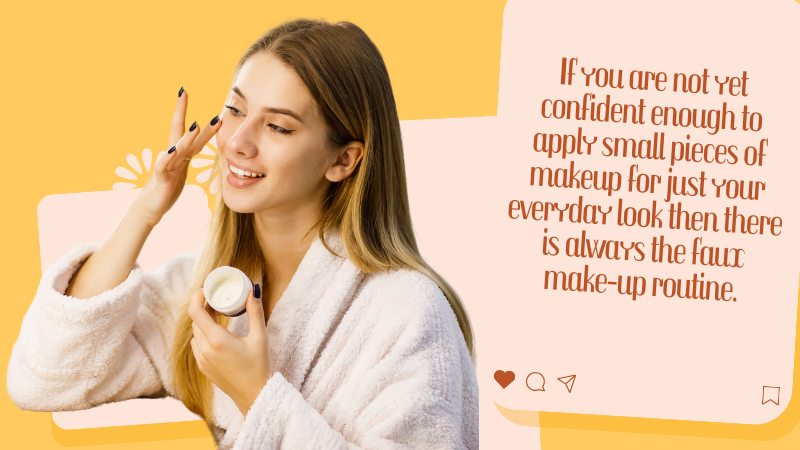 If you are not yet confident enough to apply small pieces of makeup for your everyday look, there is always the faux makeup routine. This helps give you the impression and the feeling that you’re doing things like applying foundation or lipstick without actually doing so. And the best part? No one will question you if you’re worried about looking too feminine in front of family or friends.