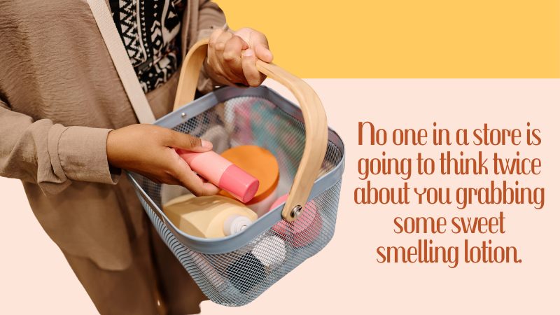 Again, no one in a store is going to think twice about you grabbing some sweet-smelling lotion. Trust me, sis, you’re worrying too much about how other people might see you. And if you feel a bit too shy to go out and get these things, then there are other ways. Online shopping is one, and then you can order all of this from the comfort and privacy of your own home.