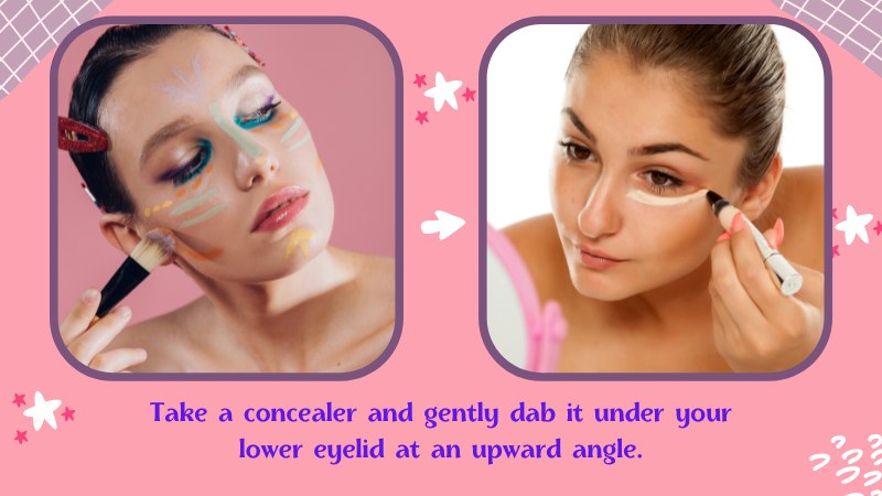 Take a concealer and gently dab it under your lower eyelid at an upward angle.
