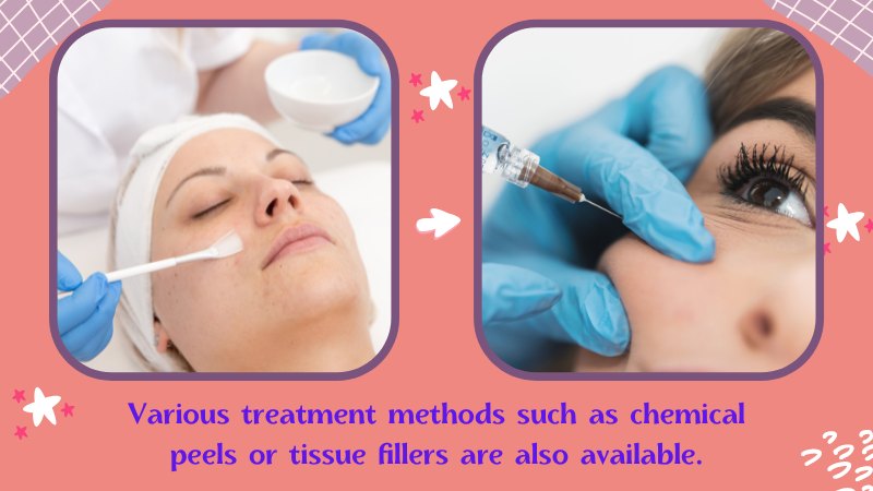 Various treatment methods, such as chemical peels or tissue fillers, are also available.