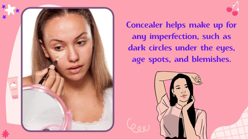 Concealer helps make up for any imperfection, such as dark circles under the eyes, age spots, and blemishes.