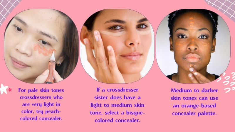 For pale skin tones crossdressers who are very light in color, try peach-colored concealer.