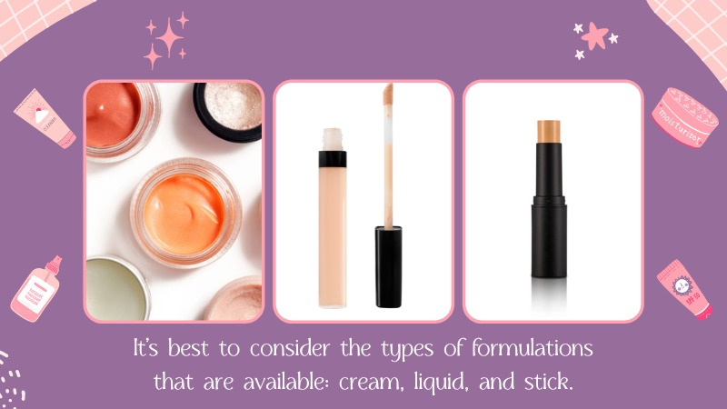 It’s best to consider the types of formulations that are available: cream, liquid, and stick.