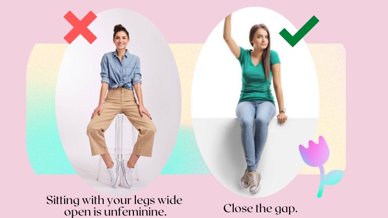 Sitting with your legs wide open is unfeminine. And it will give you off, especially if you are trying to act feminine and want to be a perfect crossdresser.