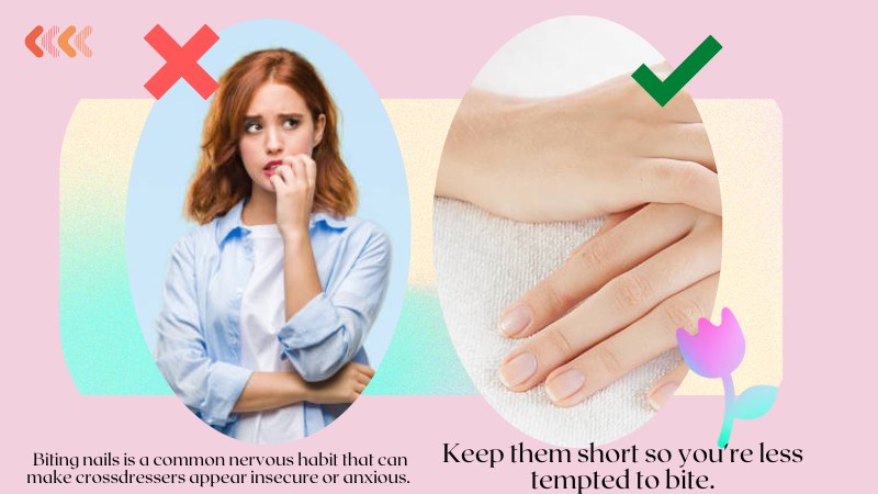 This is a common nervous habit that can make crossdressers appear insecure or anxious. If you bite your nails, try to keep them short so you’re less tempted to bite. You can also try to keep a nail file or nail polish handy, so you can take your mind off of biting your nails.