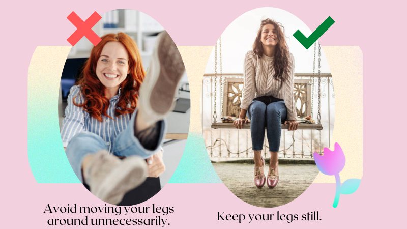 This can come across as rude or unprofessional. If you’re sitting with your legs apart, try to close the gap, so you’re not taking up too much space. Also, to make sure you are not showing too much.