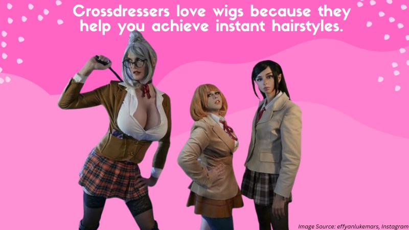 Crossdressers love wigs because they help you achieve instant hairstyles.